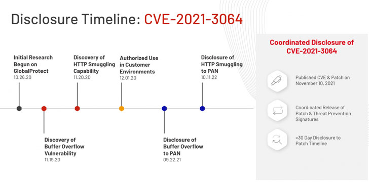 The security bug stems from a buffer overflow that occurs while parsing user-supplied input. Successful exploitation of the flaw necessitates that the attacker strings it with a technique known as HTTP smuggling to achieve remote code execution on the VPN installations, not to mention have network access to the device on the GlobalProtect service default port 443.